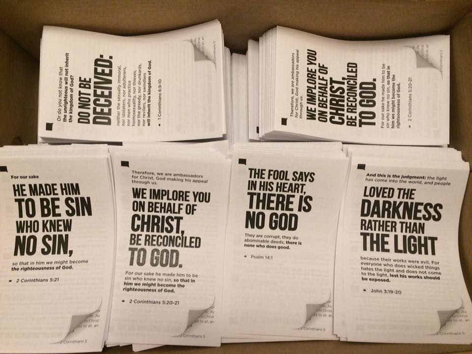 In this ranking of evangelism methods, tracts always end up in last place. Rather than focus on the fact that at any given time you can whip out 50–100 of these babies in the time it takes to have one conversation (not that I’m de-ranking convos), we tend to focus on our “control” and “emotion” of the situation. If someone has a good emotional connection via a gospel conversation, it’s going to make them more open to the gospel (we think) than a piece of paper with God’s Word on it. Again, see my rant on friendship evangelism. This is the farthest thing from the truth, because news flash, we are not in control of the outcome of any evangelism encounter, God is. Whether he wants to use a tract, conversation or preaching, each method is equally effective as the other.